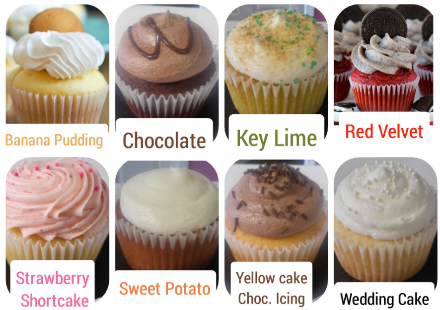 - Cupcakes ( Wedding Cake, Chocolate, Key Lime, Strawberry & Red Velvet) **Sold by the Dozen